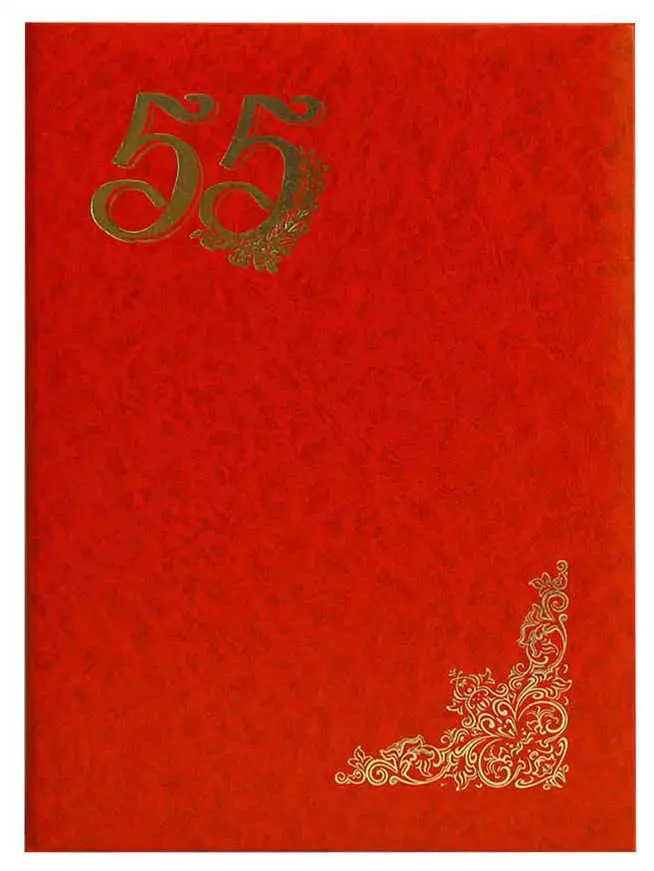 Папка адресная бумвинил А4 (пухлая) "55 лет" красная с разводами