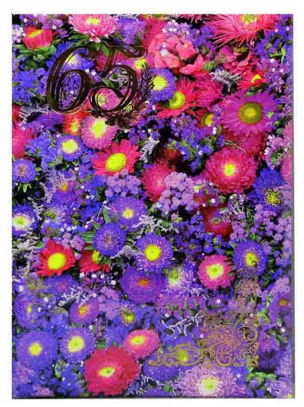 Папка адресная ламинированная А4 (пухлая) "65 лет" Астры