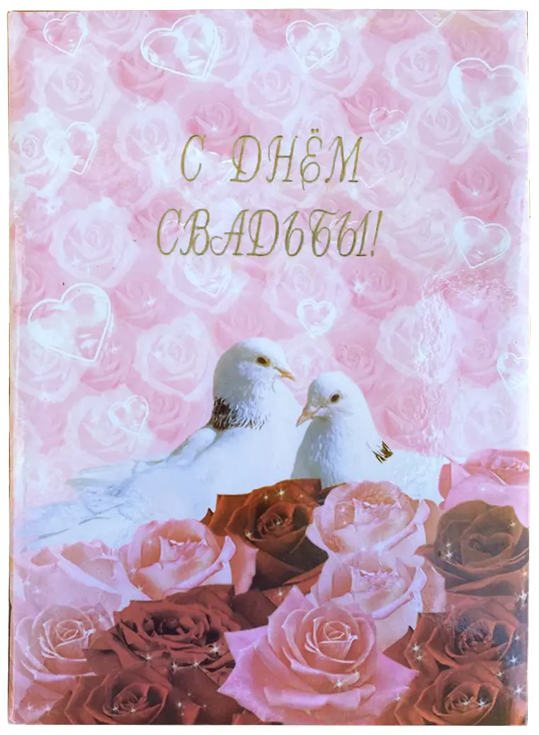 Папка адресная ламинированная А4 (пухлая) "С днем свадьбы" Два белых голубя в цветах