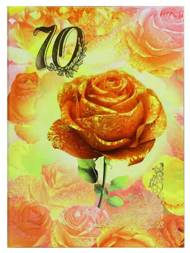 Папка адресная (пухлая) "70 лет" ламинированная А4 золотая роза