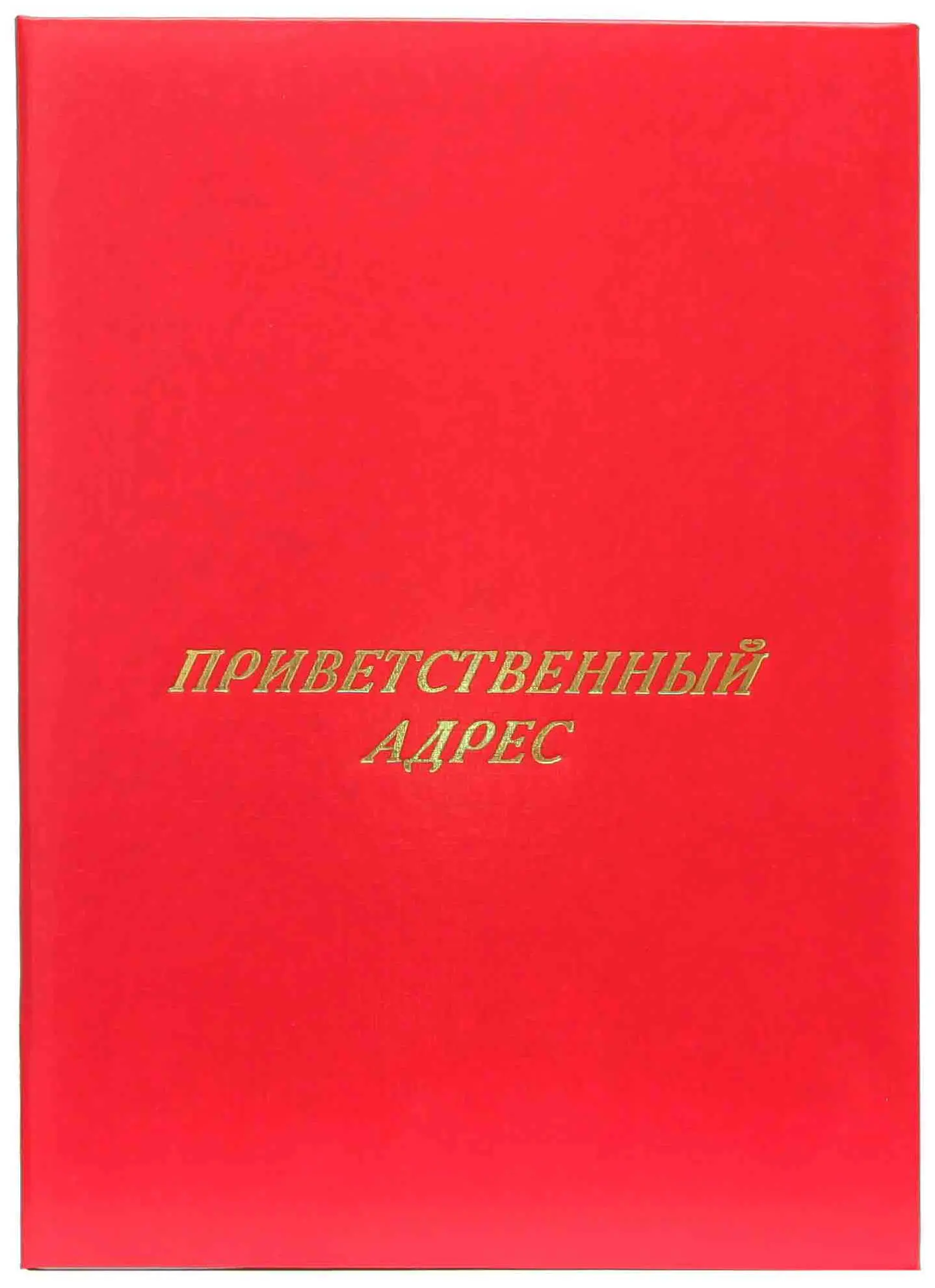 Папка адресная бумвинил А4 (пухлая) "Приветственный адрес" красная