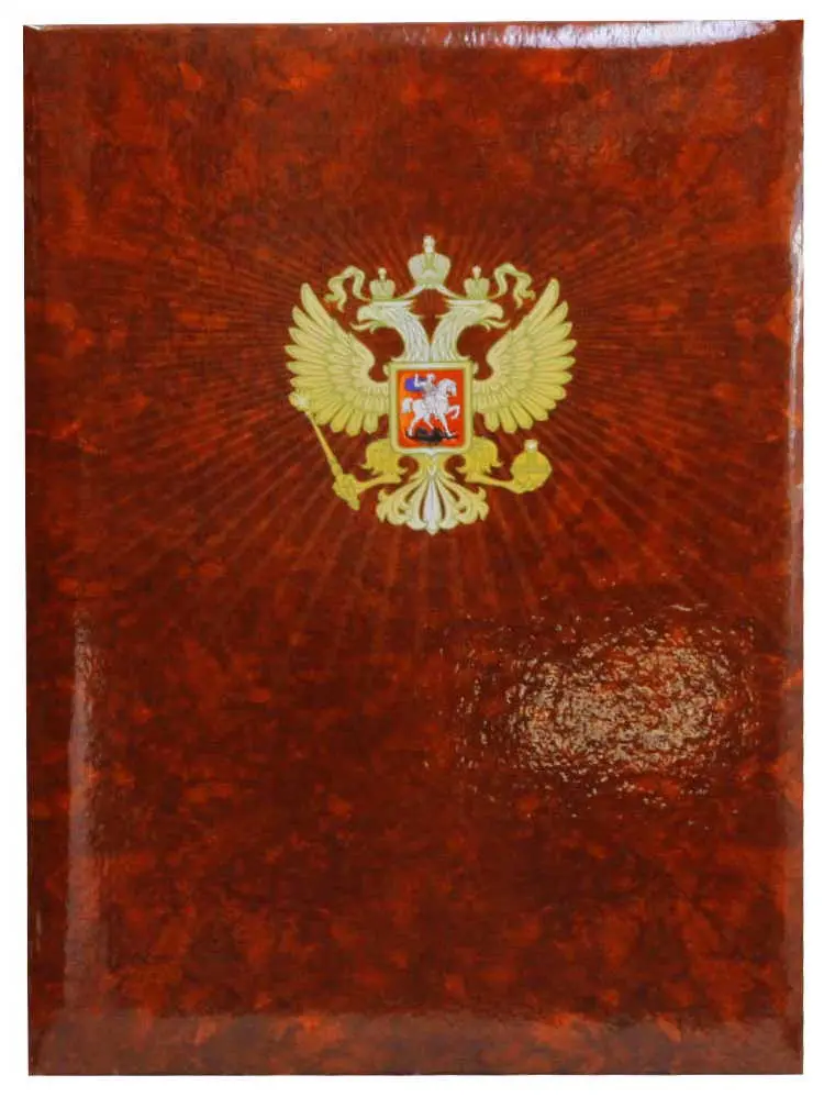 Папка адресная бумвинил А4 (жесткая) "С российским орлом" бордовая с разводами