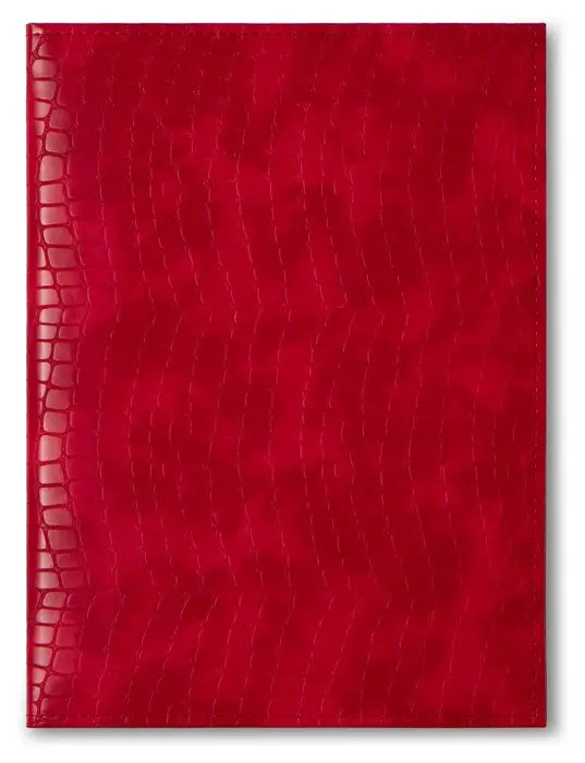 Папка адресная (пухлая) из дизайнерского материала с текстурой "Питон" красного цвета, формата А4, прошитая по краю