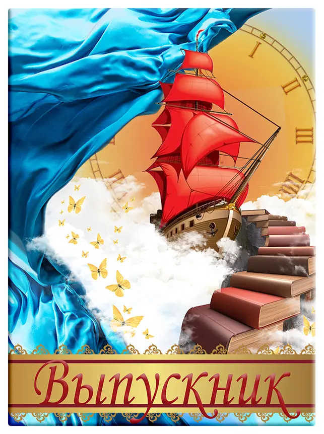 Папка адресная ламинированная А4 (пухлая) + 2 файла "Выпускнику" Алые паруса