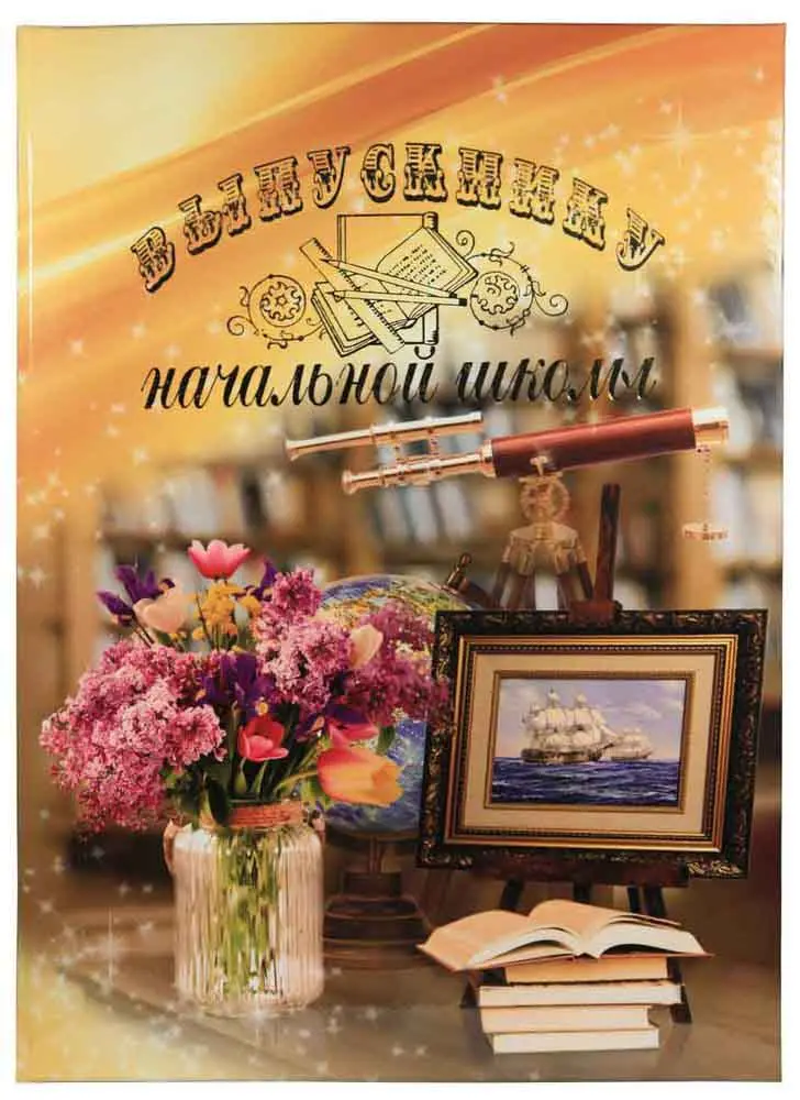 Папка адресная ламинированная А4 (пухлая) + 3 файла "Выпускнику начальной школы" Открытая книга