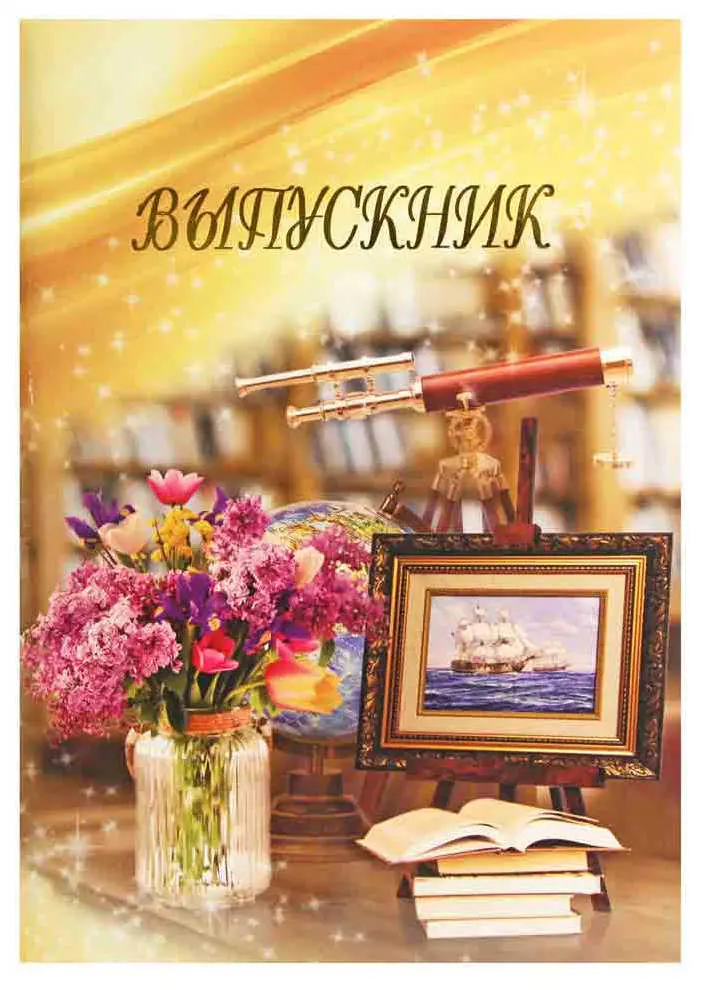 Папка адресная ламинированная А4 (пухлая) + 3 файла "Выпускнику" Колокольчик из цветов