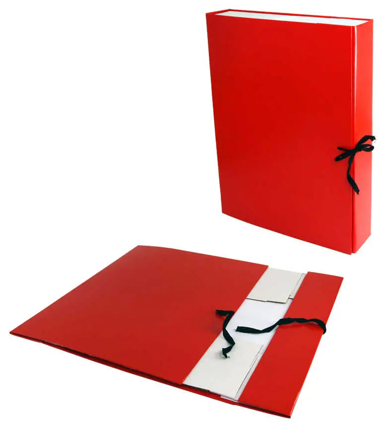 Архивная папка с регулируемым корешком под лист А4, корешок 10-70 мм, картон/бумвинил, на веревке, красная