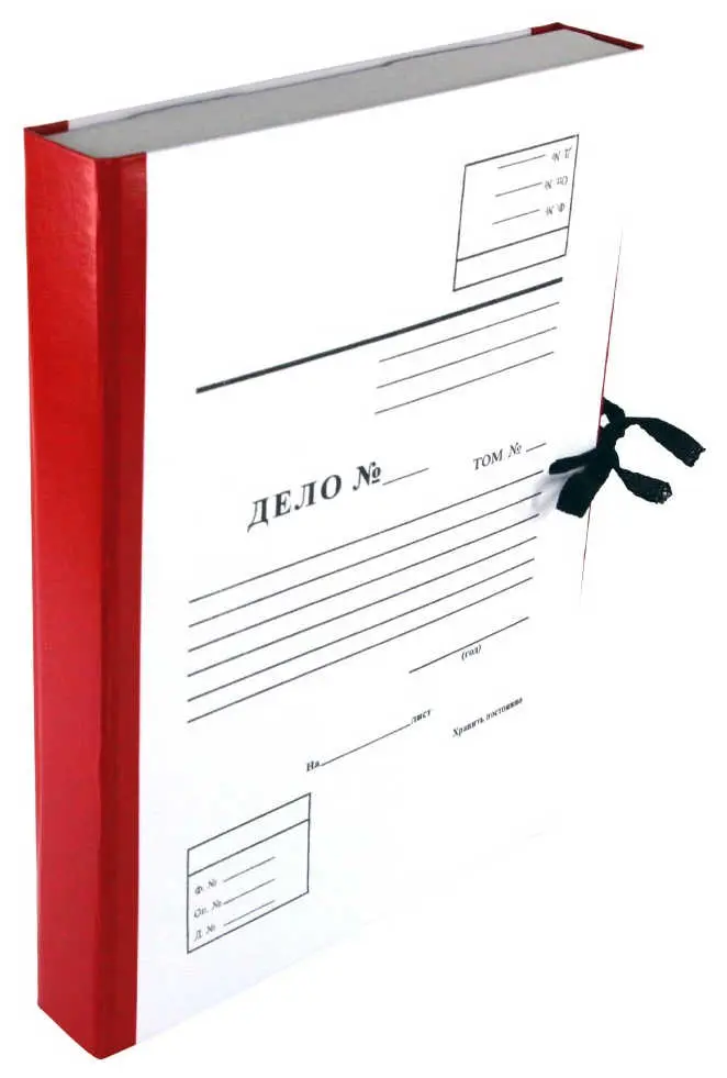 Архивный короб "Дело" А4, 35 мм, бумвинил, складывающийся, красный
