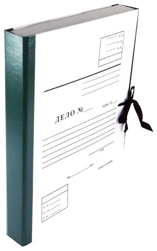 Архивный короб "Дело" А4, 35 мм, бумвинил, складывающийся, зеленый