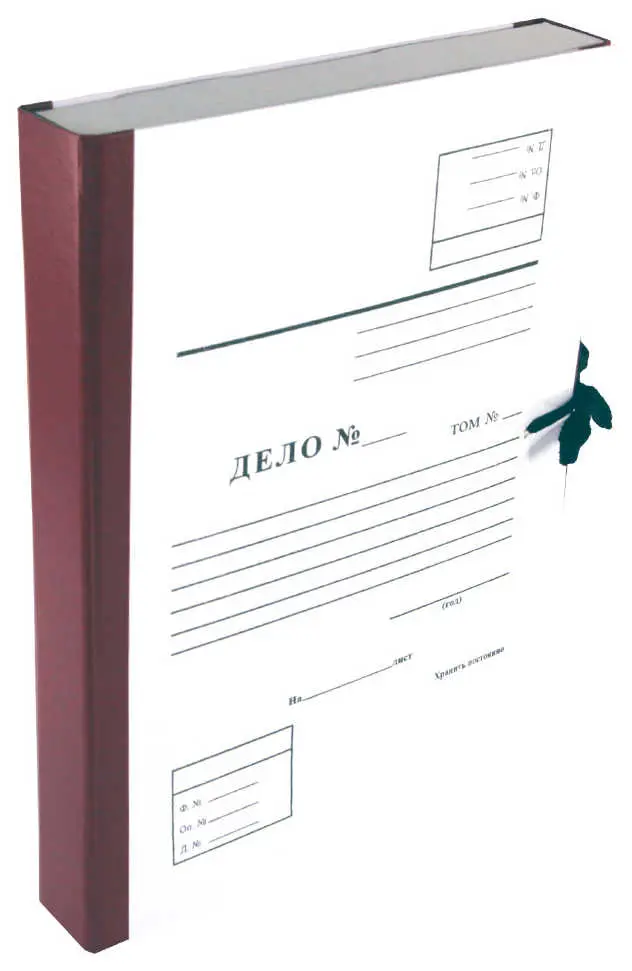 Архивный короб "Дело" А4, 35 мм, бумвинил, складывающийся, бордовый