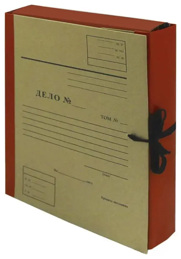 Архивная папка "Дело" А4, 50 мм, крафт/бумвинил, 4 завязки, красная
