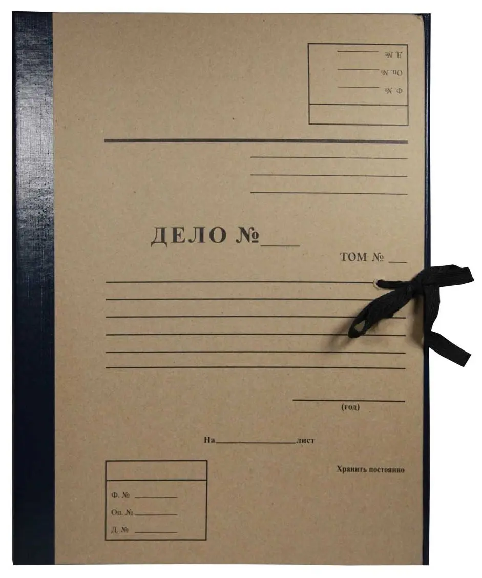 Архивная папка "Дело" (форма 21) А4, 30 мм, бумвинил, с Г-образными гребешками, шнурки, синяя