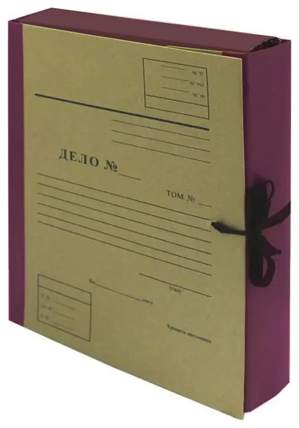 Архивная папка "Дело" (форма 21) А4, 100 мм, бумвинил, с цельнокройным гребешком, шнурки, бордовая