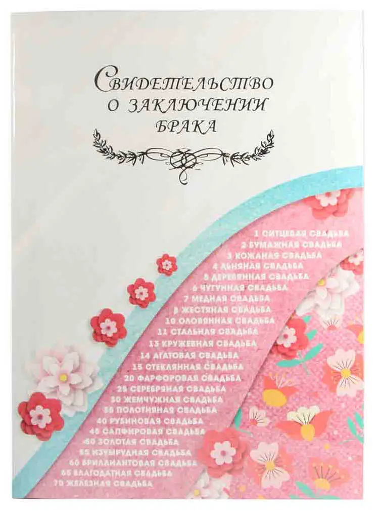 Папка с файлом ламинированная А5 (жесткая) "Свидетельство о заключении брака" Любовь