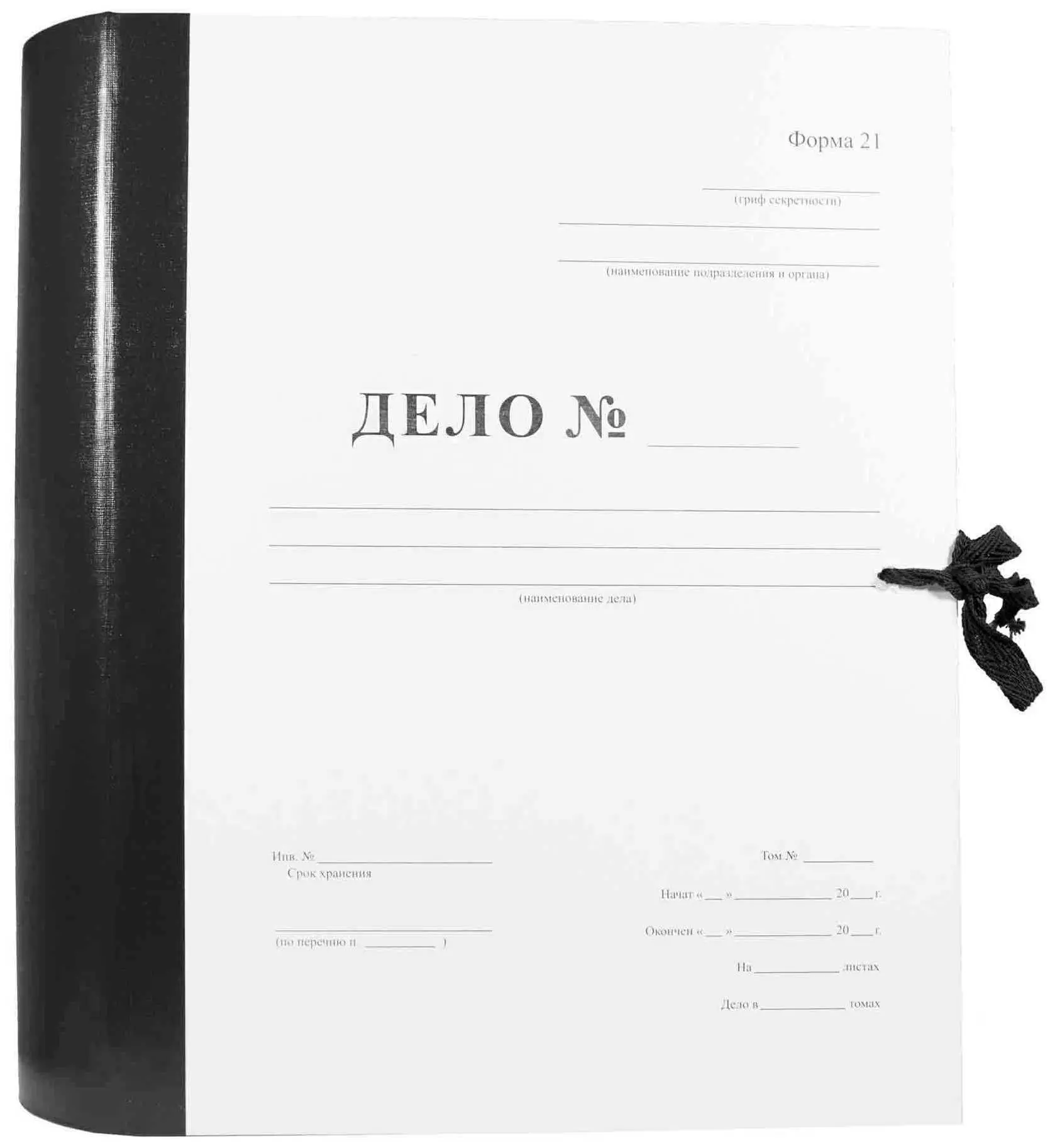 Архивная папка "Дело" (форма 21) А4, 40 мм, бумвинил, с Г-образными гребешками, шнурки, черная
