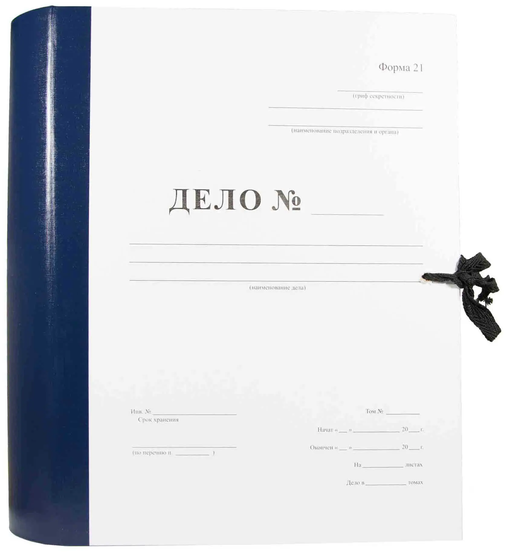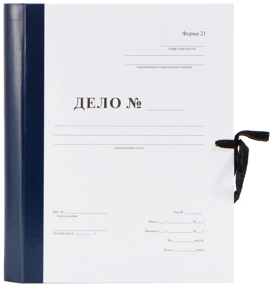 Архивная папка "Дело" (форма 21) А4, 20 мм, бумвинил, с цельнокройным гребешком, шнурки, синяя
