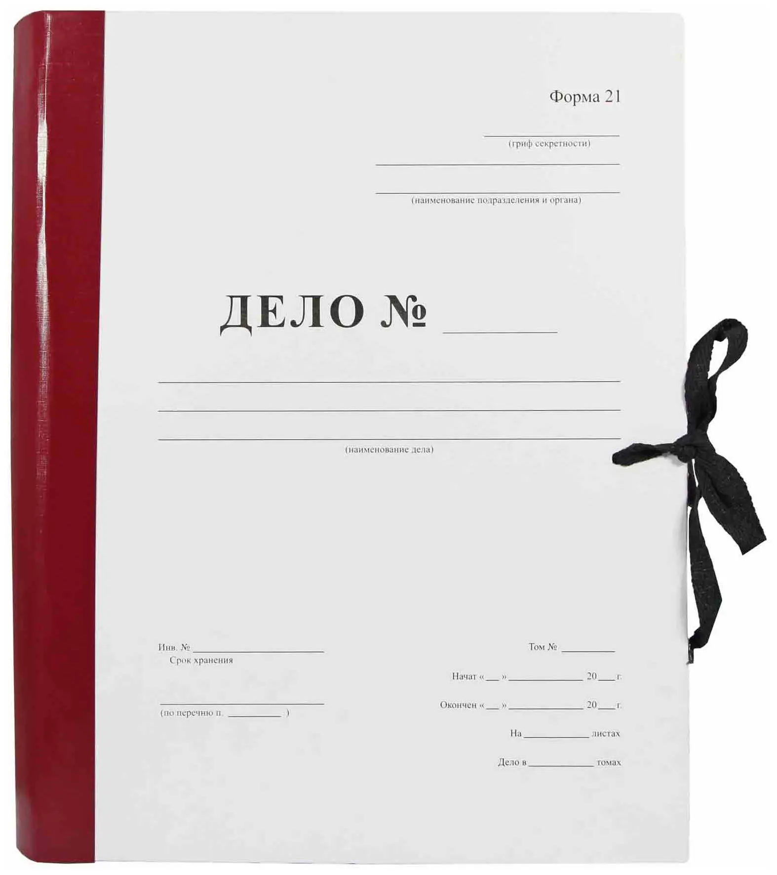 Архивная папка "Дело" (форма 21) А4, 50 мм, бумвинил, с цельнокройным гребешком, шнурки, бордовая