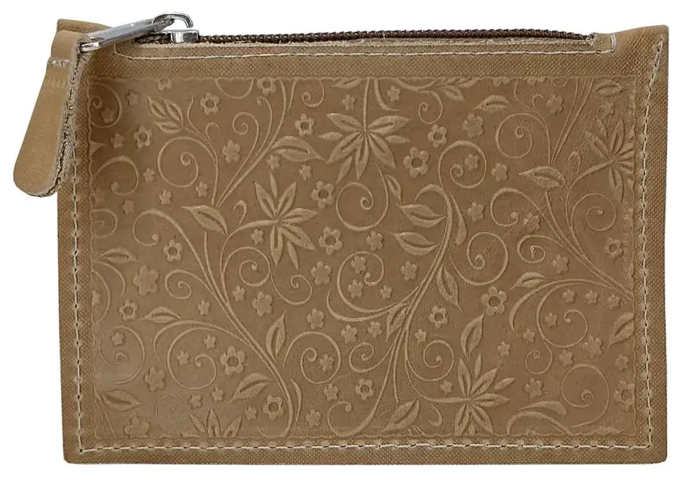Кошелек для монет из натуральной кожи 12x8 см, бежевый, тиснение по коже конгрев "Флаверс"