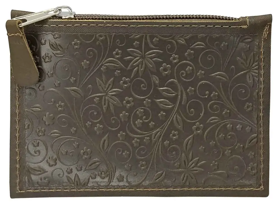 Кошелек для монет из натуральной кожи 12x8 см, оливковый, тиснение по коже конгрев "Флаверс"