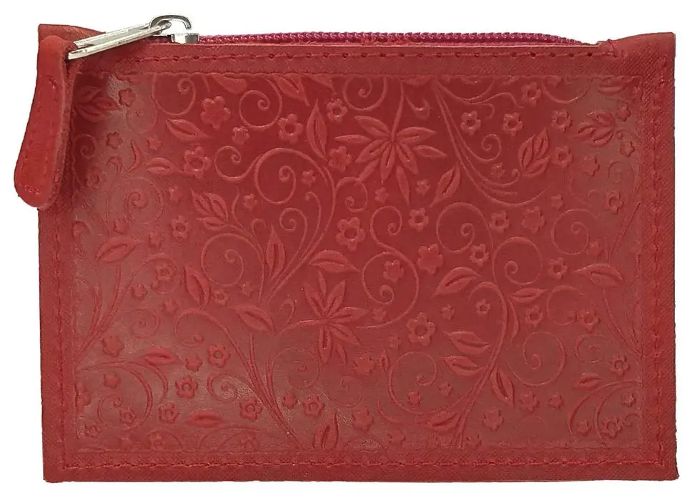 Кошелек для монет из натуральной кожи 12x8 см, красный, тиснение по коже конгрев "Флаверс"