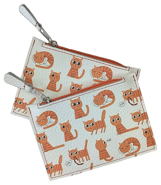 Кошелек для монет из натуральной кожи 12x8 см, цветной рисунок по коже "Котейки"