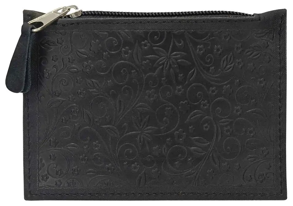 Кошелек для монет из натуральной кожи 12x8 см, черный, тиснение по коже конгрев "Флаверс"