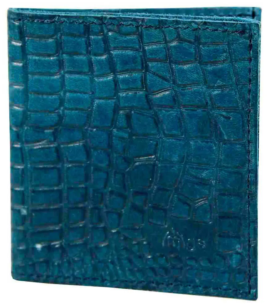 Кошелек для монет из натуральной кожи 12x8 см, голубой, тиснение по коже конгрев "Флаверс"