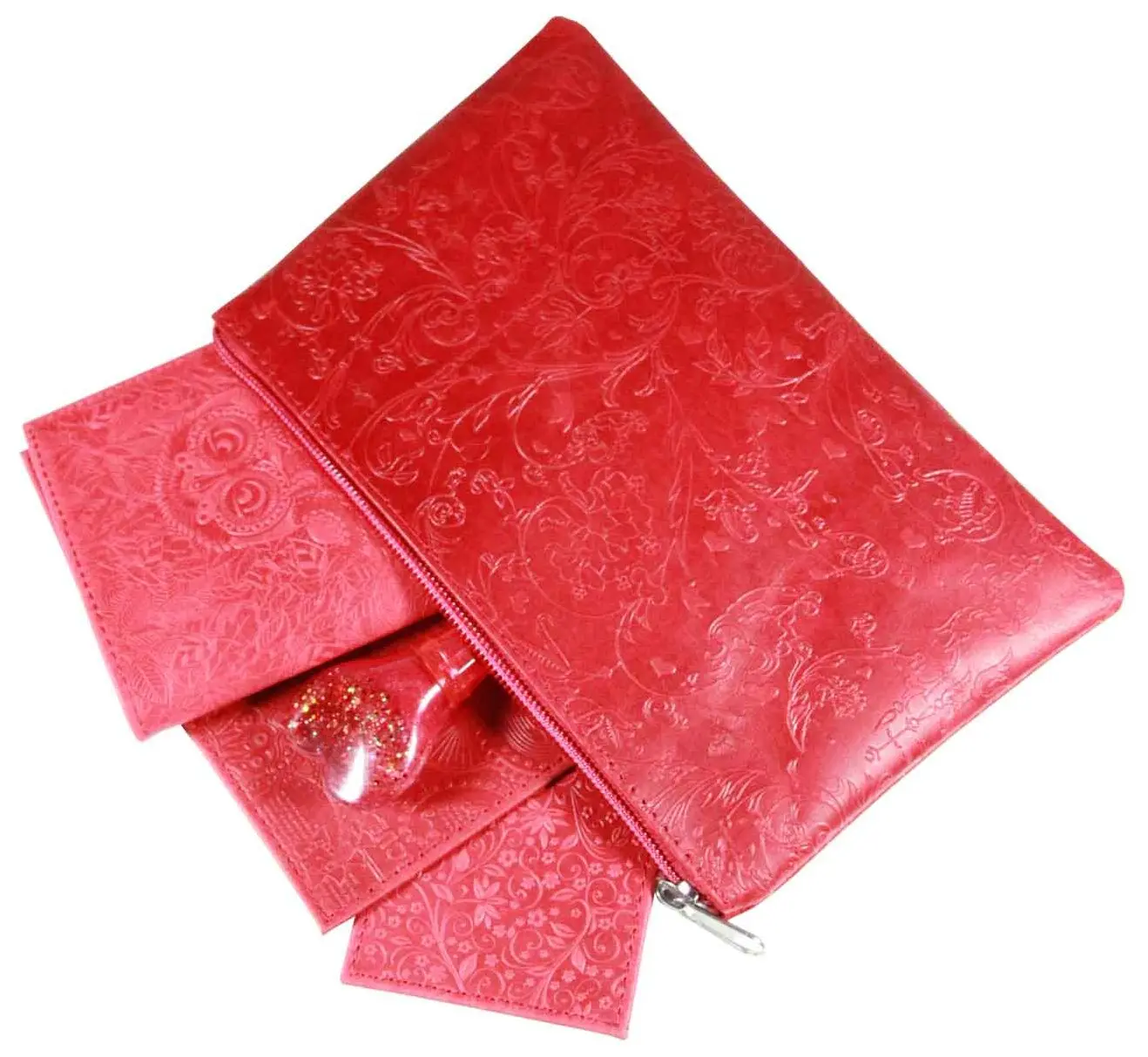 Косметичка из натуральной кожи 21x0,5x12,5 см, красная, тиснение по коже конгрев "Флаверс"