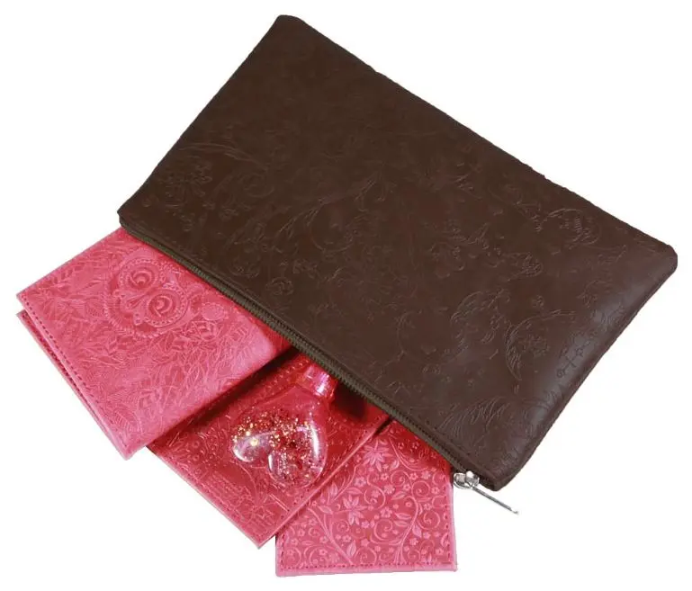 Косметичка из натуральной кожи 21x0,5x12,5 см, коричневая, тиснение по коже конгрев "Вдохновение"