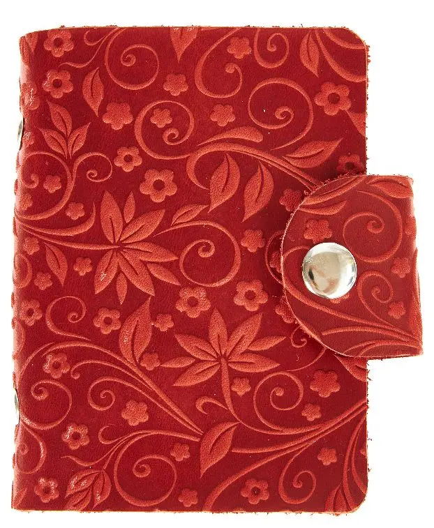 Визитница вертикальная 1 секц. (18 карманов) из натуральной кожи, красная, тиснение "Флаверс"