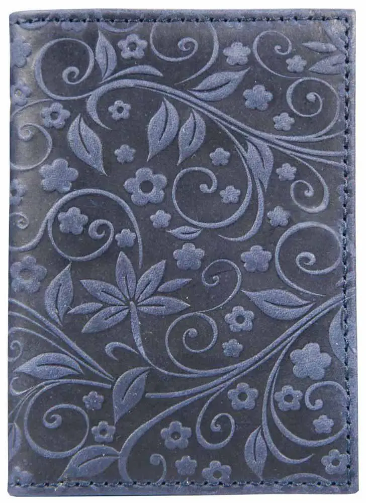 Визитница вертикальная 1 секц. (18 карманов) из натуральной кожи, синяя, тиснение "Флаверс"