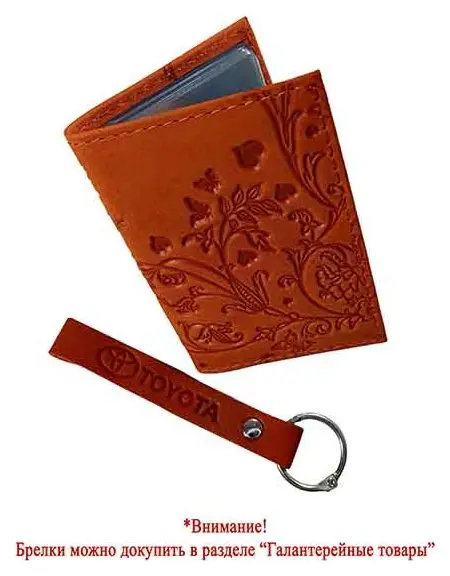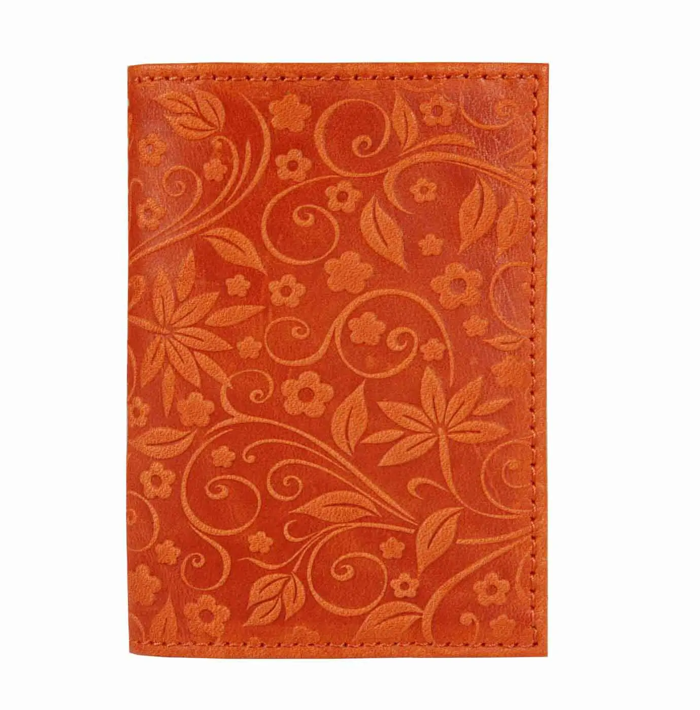 Визитница вертикальная 1 секц. (18 карманов) из натуральной кожи, рыжая, тиснение "Флаверс"