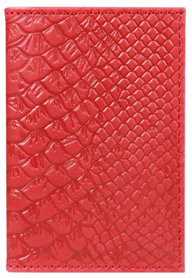 Визитница вертикальная 1 секц. (18 карманов) из натуральной кожи, красная, тиснение "Питон"