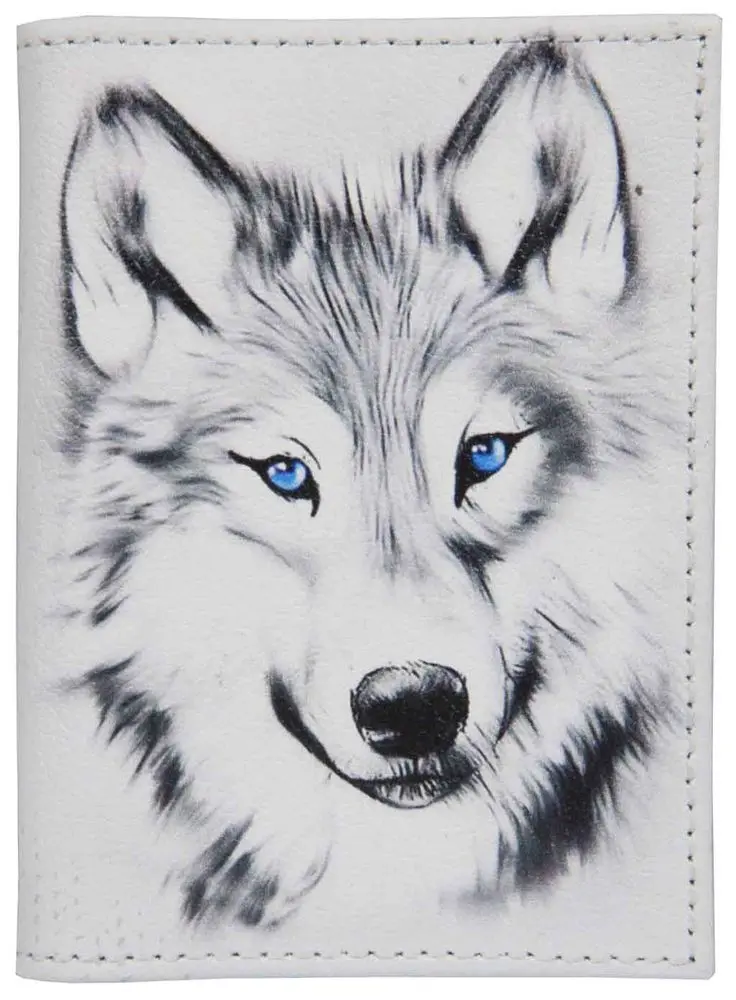 Визитница вертикальная 1 секц. (18 карманов) из натуральной кожи, цветной рисунок по коже "Северный волк"