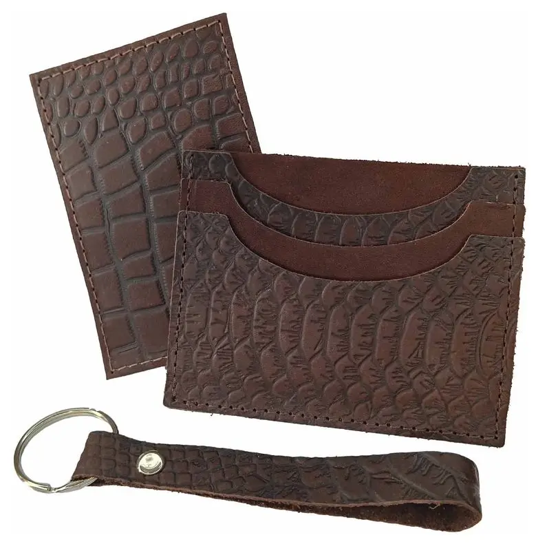 Картхолдер "Улыбка" из натуральной кожи, коричневый, тиснение "Питон"