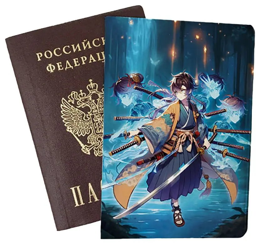 Обложка для паспорта, ПВХ матовый с печатью, принт "Самурай"