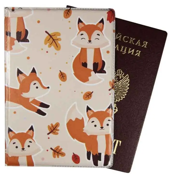 Обложка для паспорта, ПВХ матовый с печатью, принт "Лисички"