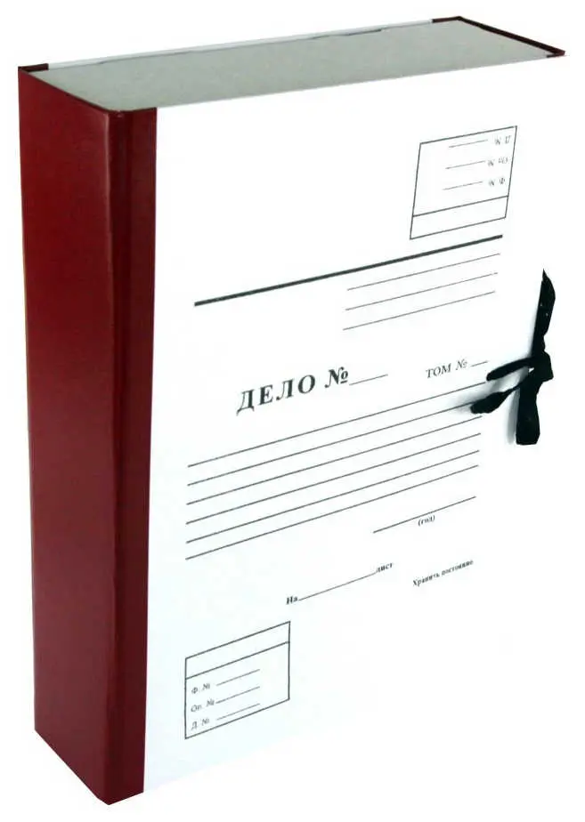 Архивный короб "Дело" А4, 70 мм, бумвинил, складывающийся, бордовый