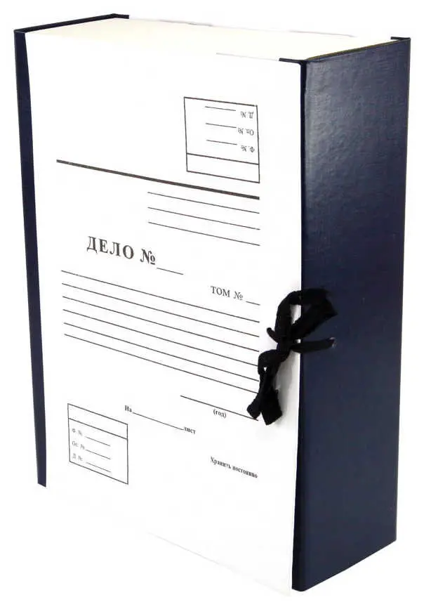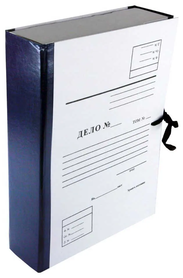 Архивный короб "Дело" А4, 80 мм, бумвинил, складывающийся, синий