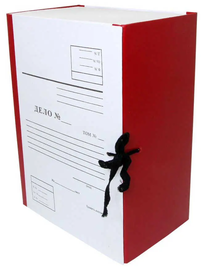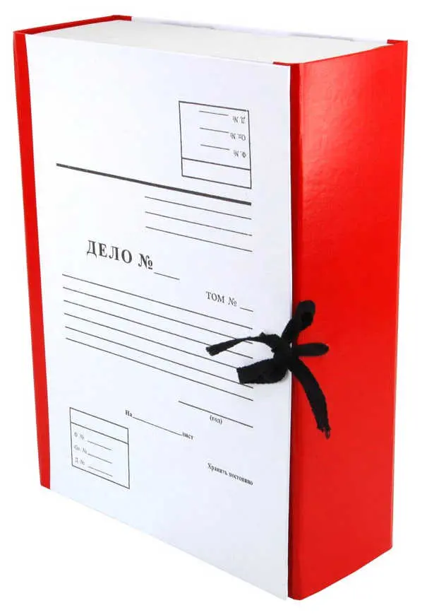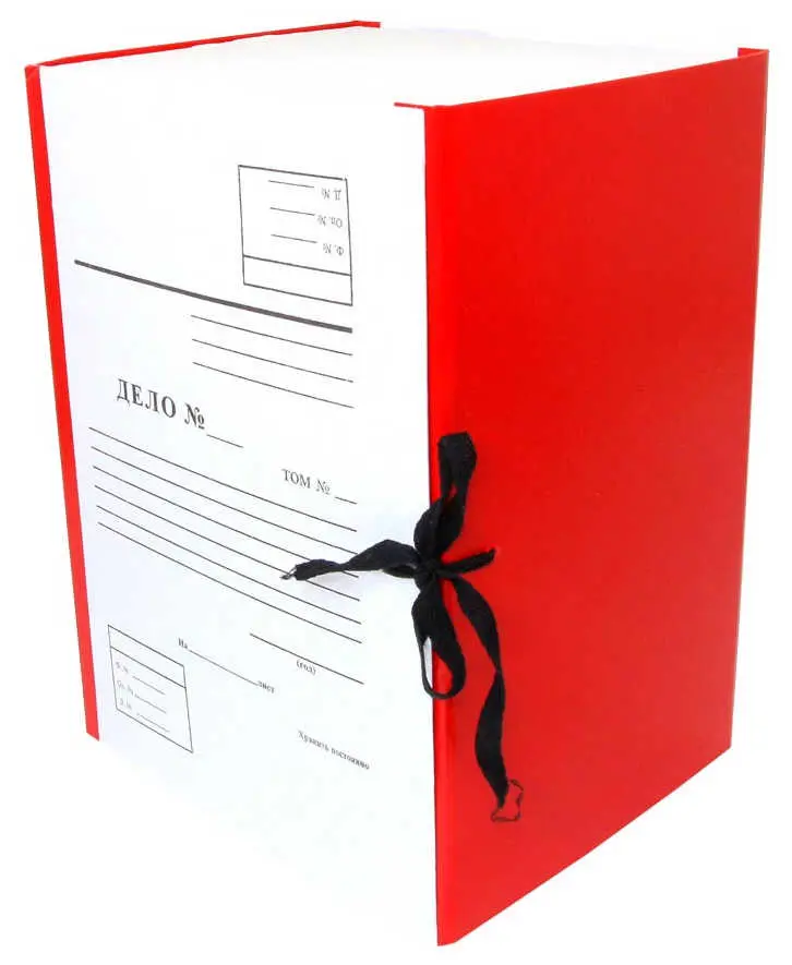Архивный короб "Дело" А4, 200 мм, бумвинил, складывающийся, красный