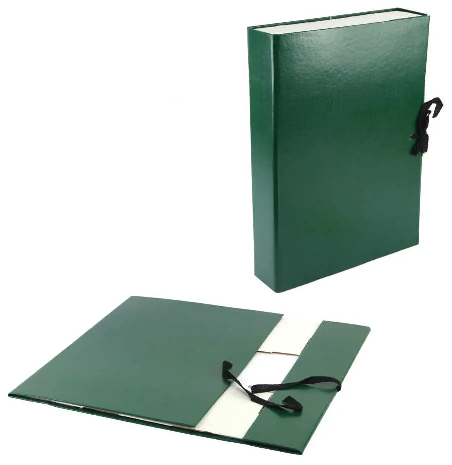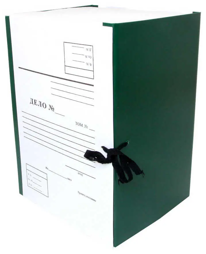 Архивный короб "Дело" А4, 80 мм, бумвинил, складывающийся, зеленый
