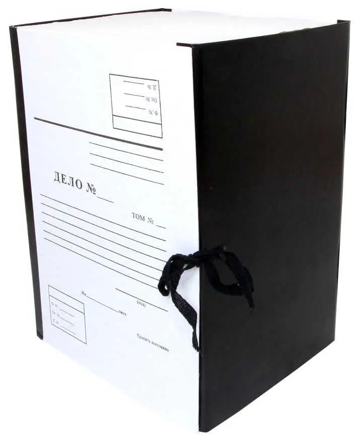 Архивный короб "Дело" А4, 150 мм, бумвинил, складывающийся, черный