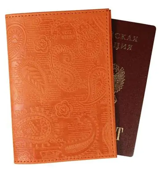 Обложка для паспорта из натуральной кожи, рыжий, сплошное блинтовое тиснение по коже "Индийский орнамент"