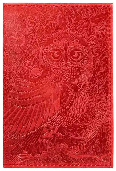 Обложка для паспорта из натуральной кожи, красный, сплошное тиснение по коже "Сова"