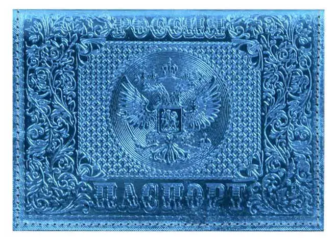 Обложка для паспорта из натуральной кожи, металлик голубой, тисн.блинтовое"РОССИЯ-ПАСПОРТ-ГЕРБ"