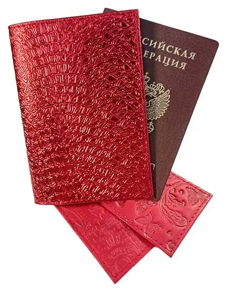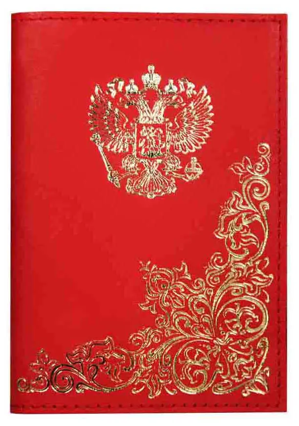Обложка для паспорта из натуральной кожи, красный, тиснение золотом "Народная"