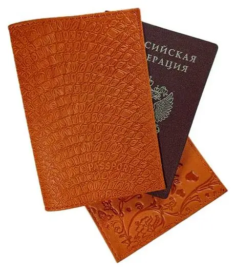 Обложка для паспорта из натуральной кожи, рыжий, сплошное тиснение по коже "Саламандра"