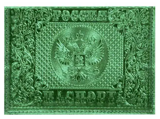 Обложка для паспорта из натуральной кожи, металлик зеленый, тисн.блинтовое"РОССИЯ-ПАСПОРТ-ГЕРБ"