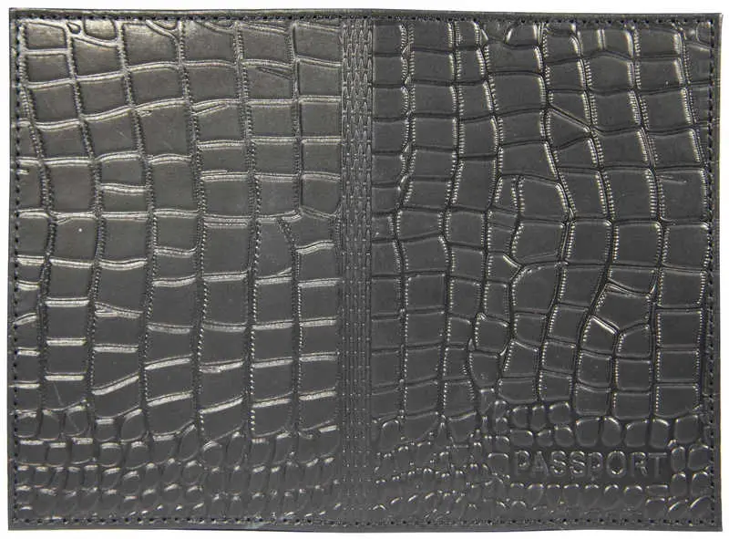 Обложка для паспорта из натуральной кожи, черный, сплошное тиснение по коже "Passport Аллигатор"