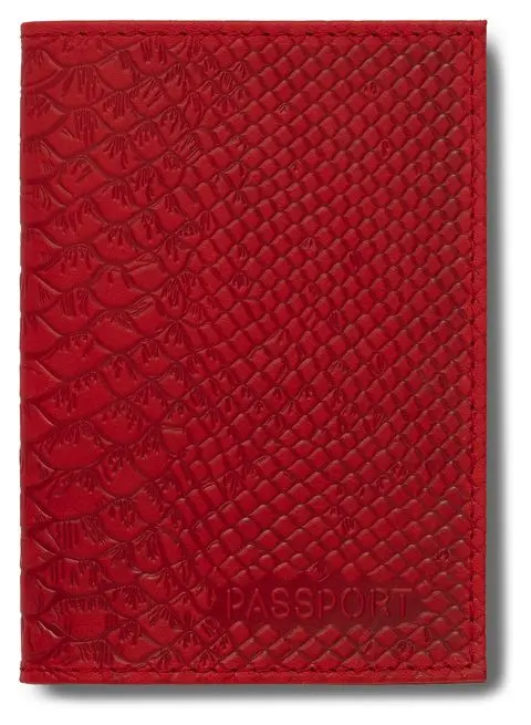 Обложка для паспорта из натуральной кожи, красный, сплошное блинтовое тиснение по коже "Питон"